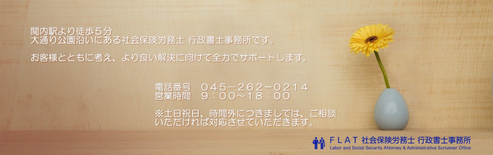 | 事務所名 | FLAT 社会保険労務士 行政書士事務所 FLAT Labor and Social Security Attorney & Administrative Scrivener Office |